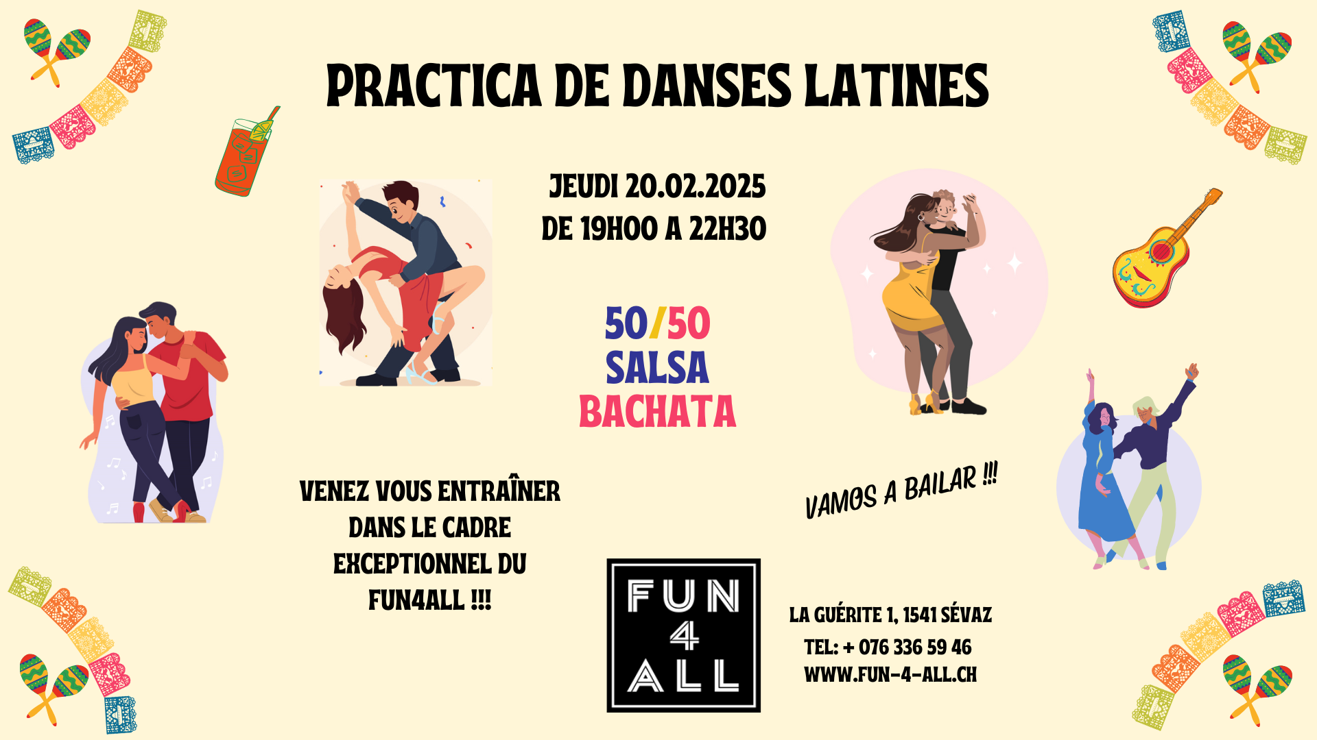 💃 PRACTICA DE DANSES LATINES 🕺 Envie de perfectionner tes pas de Salsa et de Bachata ? Rejoins-nous pour une soirée practica GRATUITE dans une ambiance chaleureuse et décontractée.